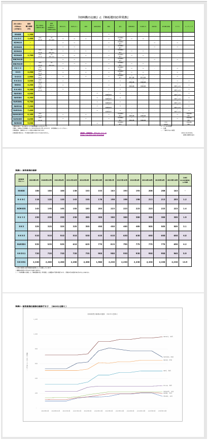 ペラ一枚で、材料費の比較、適した熱処理が直感的に分かりますので、打ち合わせ等にご活用いただけます。